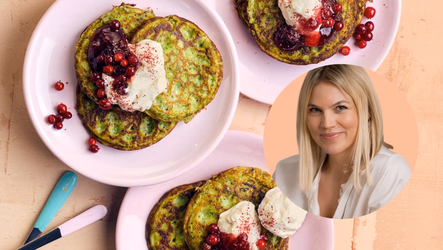 Koko ruokafilosofiani lähtee sesonki- ja lähiruoka-ajattelusta: syksyllä kannattaa syödä syksyn raaka-aineita, sillä sekä niiden maku että ravintoarvot ovat parhaimmillaan. Itse tykkään kokata vaikkapa pasta bolognesea hirven tai peuran lihasta sekä syödä kauden vihanneksia. On myös tärkeää ymmärtää, miten syömisjärjestys ja kuidut vaikuttavat hyvään oloon. Laitan usein aterian alkuun tarjolle vihanneksia, koska niiden sisältämä kuitu laskee aterian glykeemistä indeksiä. Käytännössä tämä auttaa estämään verensokeripiikkejä. Minulla on myös urheilevat lapset, joten terveellistä välipalaa pitää olla tarjolla tasaisesti. Ymmärrän pientä lasta, jolle tulee nälkäkiukku, sillä itsellenikin tulee, jollen huolehdi ruokarytmistä. Näin vaihdevuosien kynnyksellä pyrin syömään tarpeeksi proteiinia ja usein lisään aamupuuroon kananmunan, josta saa koliinia, joka tukee hermoston toimintaa ja auttaa hillitsemään aivosumua. Mielestäni se, miten syöt, on lähes yhtä tärkeää kuin mitä syöt. Ruuansulatuksesta puhutaan paljon, ja tiedetään jo, ettei ruokaa vaikkapa kannata hotkia. Vähemmän kuitenkin puhutaan tai edes tiedetään rakkaushormoniksikin kutsutun oksitosiinin yhteydestä ruuansulatukseen. Perehdyin syvemmin hormonien merkitykseen tehdessäni uusinta kirjaani Hormonien voima. Oksitosiini auttaa laskemaan stressihormoneja ja tehostaa ruuansulatusta. Itse sytytän aina kynttilät, kun tulen kotiin ja alan kokata. Lisäksi olen asentanut puhelimeeni sovelluksen, joka blokkaa kaikki somesovellukset iltaviiden jälkeen. Pitäisi aina syödä levollisessa mielentilassa, sillä stressissä suolisto ei keskity ruuansulatukseen, ja kiireessä juotu viherpirtelö antaa terveysvaikutusten sijasta helposti lähinnä ilmavaivoja. Se, miten syöt, on lähes yhtä tärkeää kuin mitä syöt. Olen entinen sprintteri, joten olen myös kokkina nopea. Saan pikaisesti pöytään muun muassa terveelliset ja ihanan kuohkeat pinaattiletut, joihin käytän tavallista enemmän kananmunia. Niitä ovat usein syömässä myös naapurin lapset.” Emilia Vuorisalmen pinaattiletut6 isoa tai noin 18 pientä // valmistusaika 45 minuuttia, josta aktiivista 15 minuuttia
